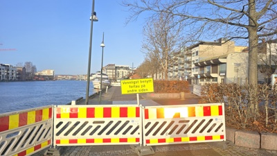 Bryggepromenaden er stengt for all ferdsel ved Bankbrygga/Kirkebrygga