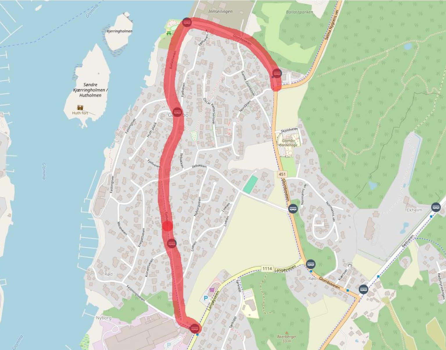 Glomboveien og Ballastveien blir stengt for gjennomkjøring fra onsdag 08.04 – fredag 10.04 på grunn av asfaltarbeider. Det blir omkjøring for busslinje 5 via Glomboveien og Langøyveien. Bussholdeplasser som ikke blir ikke betjent: Glombo Lindberg, Glombo Stene, Fjellveien, Korvettveien og Jøtul. Det blir ordinær bussrute fra mandag 13. april.