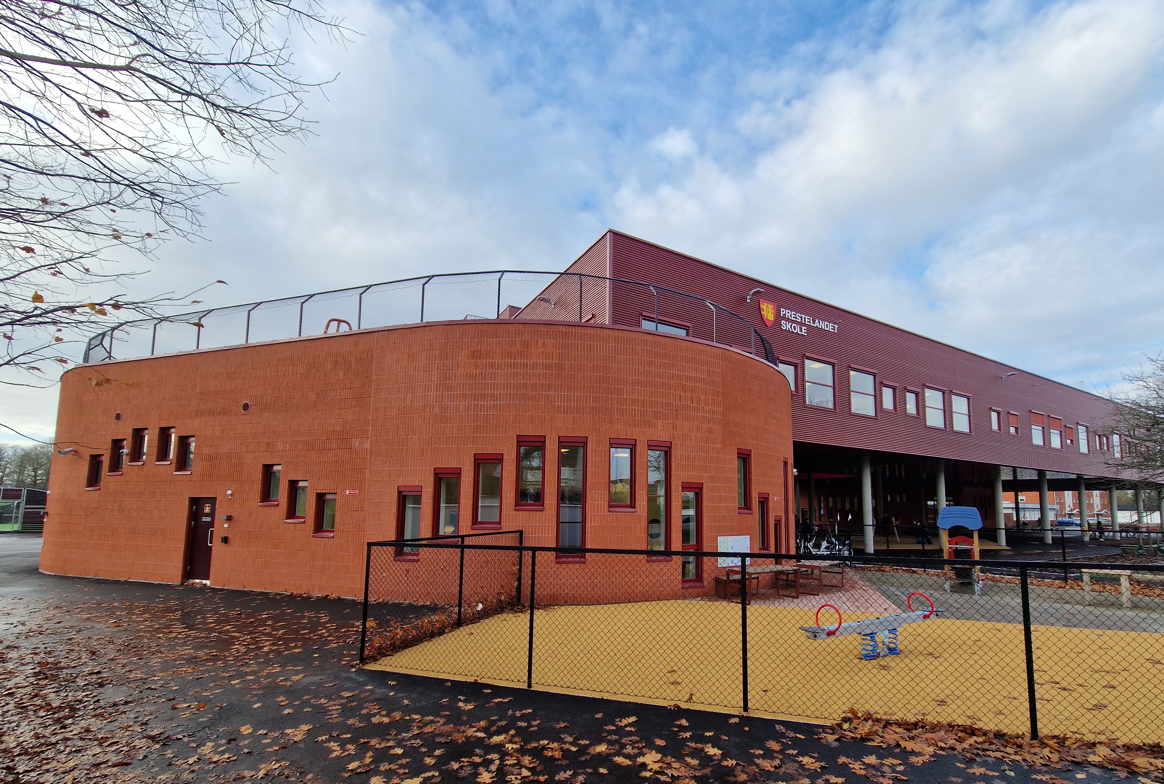 Det nye skolebygget på 3 700 kvadratmeter rommer Prestelandet skole, som gir et helhetlig spesialpedagogisk tilbud til elever med særskilte behov. Det inneholder også tilbygg for Gudeberg barne- og ungdomsskole med nye arbeidsrom og personalfasiliteter for ansatte, auditorium og musikkrom.