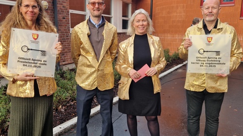 Tirsdag kunne elevene fra gamle Råkollen skole flytte inn på nye Prestelandet skole. Samtidig åpnet et nytt tilbygg ved Gudeberg barne- og ungdomsskole.