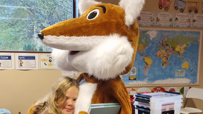 Maskot på laget når 4. klasse lærer om kildesortering