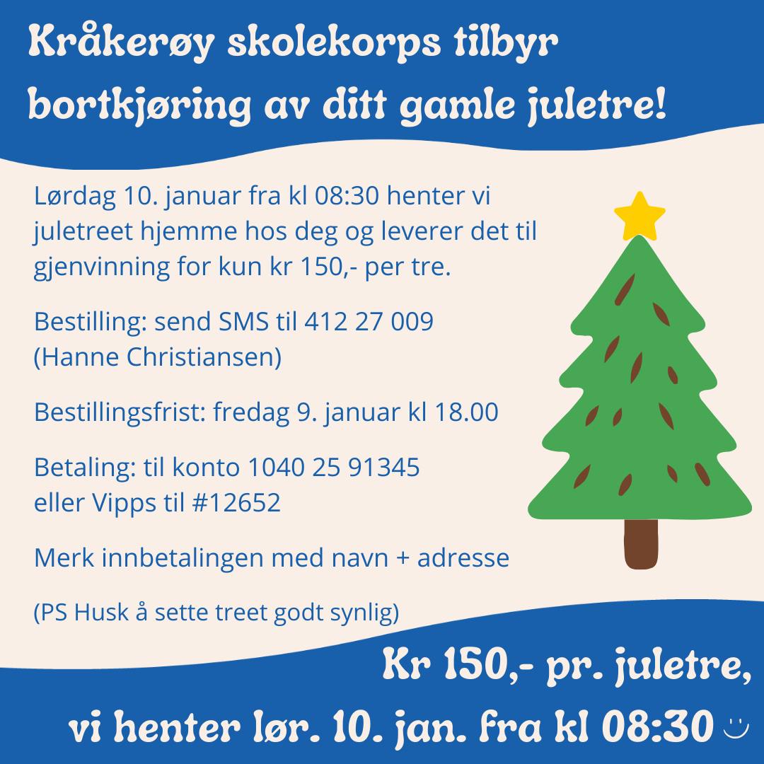 Fredrikstad kommune henter ikke juletrær, men Kråkerøy Skolekorps og 8-åringene i Trosvik IF tilbyr det i 2026 til en pris av kr. 150,- pr. juletre. Mer informasjon får du ved å klikke på linken til bildene.