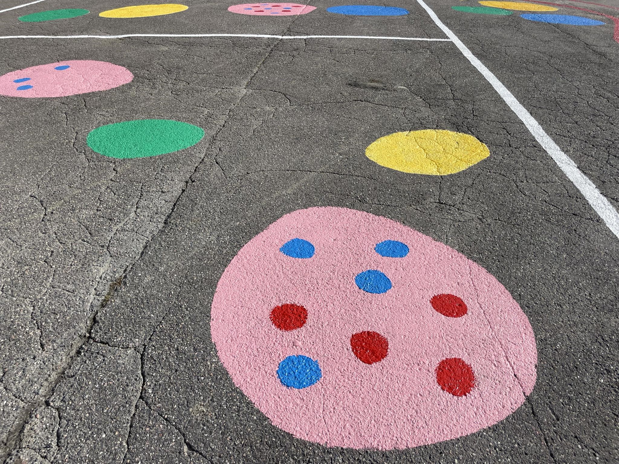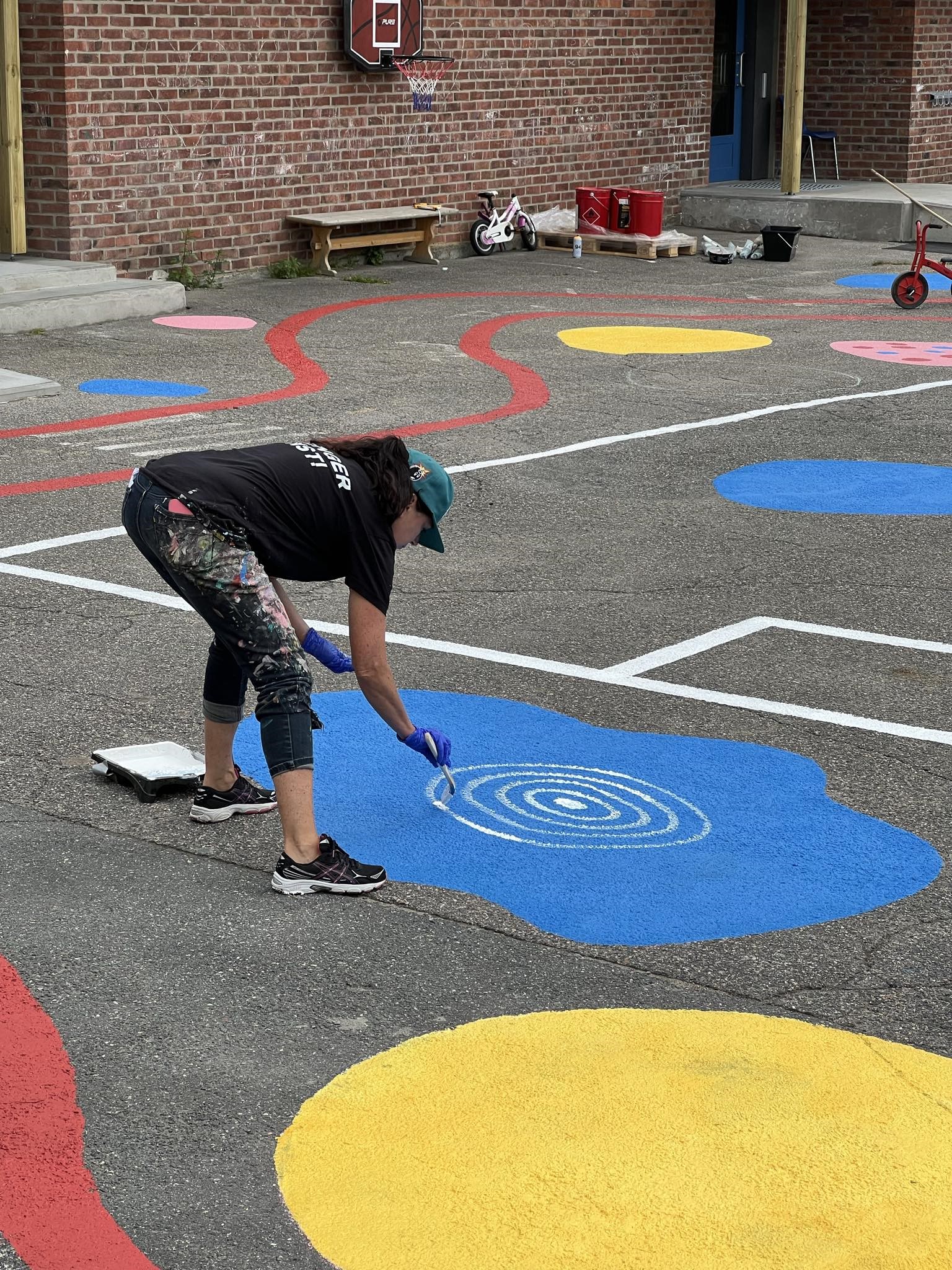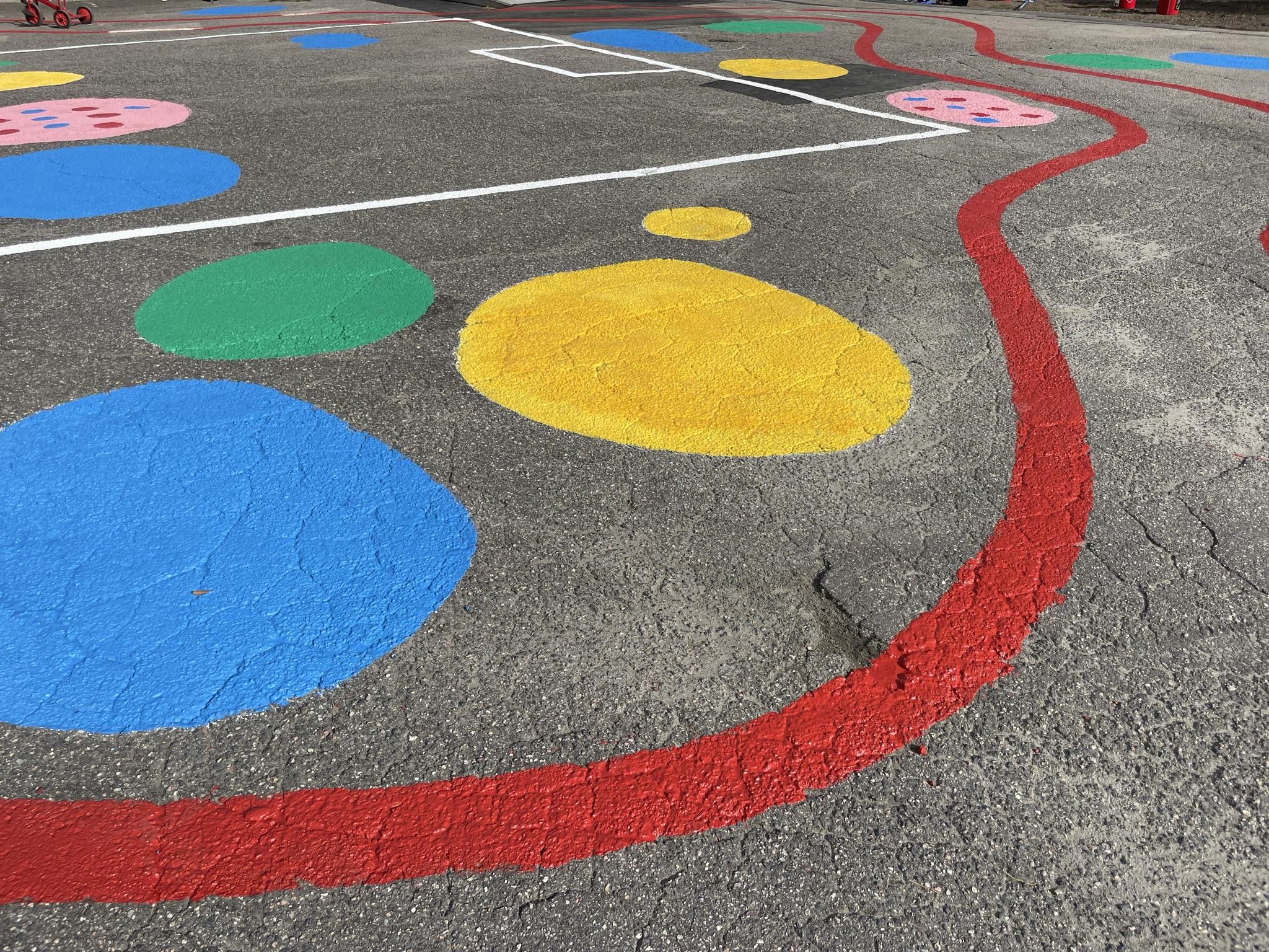 Kunstner: Kristin Romberg Kristin Jensen Romberg har malt med asfaltmaling – et tidvis utfordrende underlag! Romberg har utformet både sykkelbane, fotballbane, paradis og frie lekeområder.